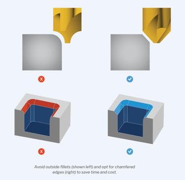 Avoid sharp internal corners (use fillets)