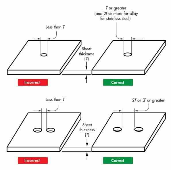 Avoid placing holes too close to bends